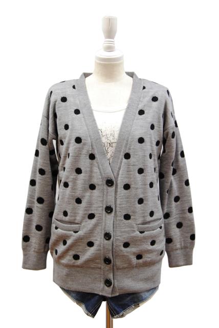 ■カシミールモールドットニットロングカーデ
