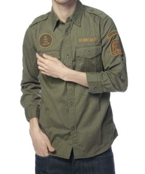 ■ワッペン付ミリタリー七分袖SH
